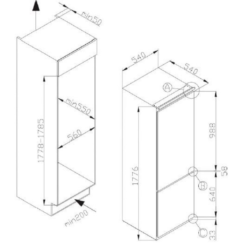 | Особливості | Регульовані скляні полиці, Тримач для вина |