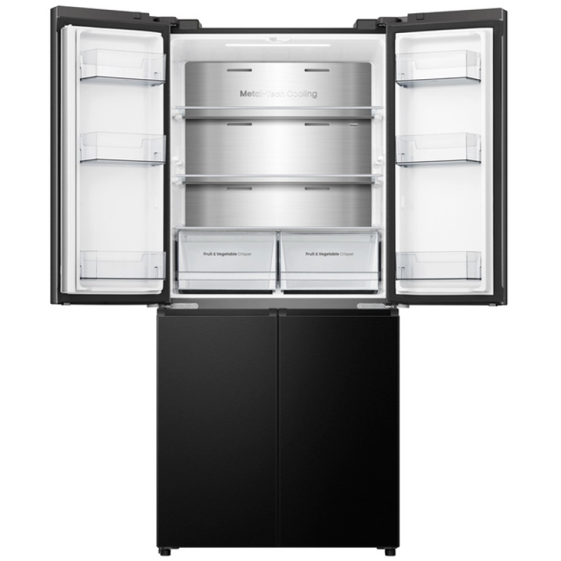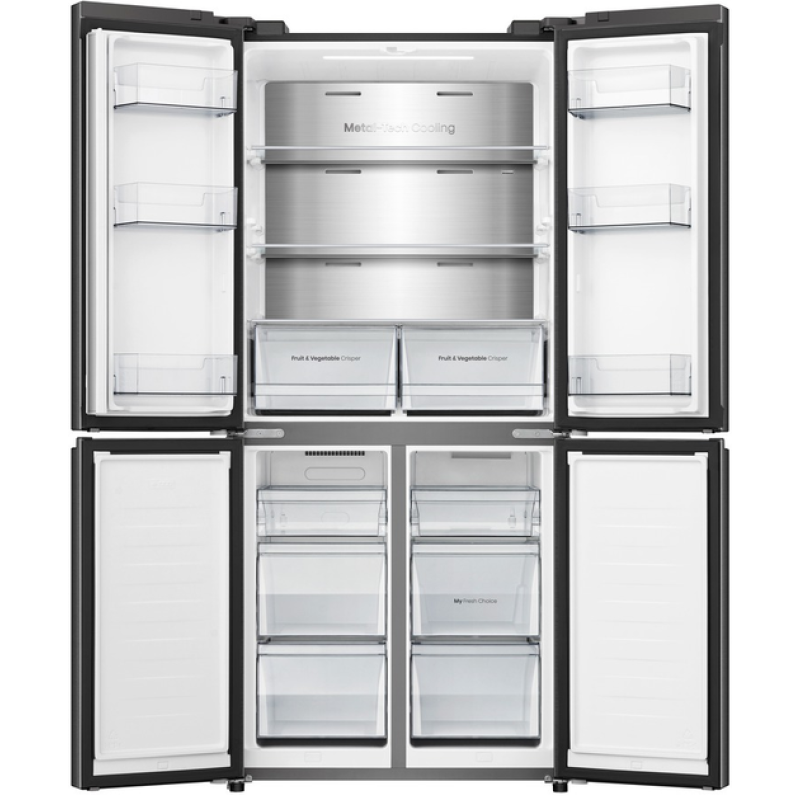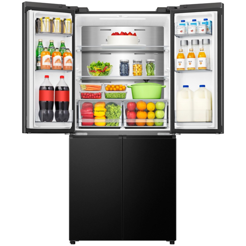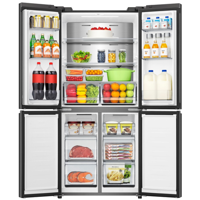 Якщо ви залишите двері холодильної або морозильної камери відчиненими, холодильник Hisense подасть звуковий сигнал. «Розумний» датчик виявить, що дверцята відчинені, і ввімкне звукову сигналізацію, щоб не допустити псування продуктів.Холодильник Side-By-Side з чотирма дверцятами. Потрійна зона для природної свіжості