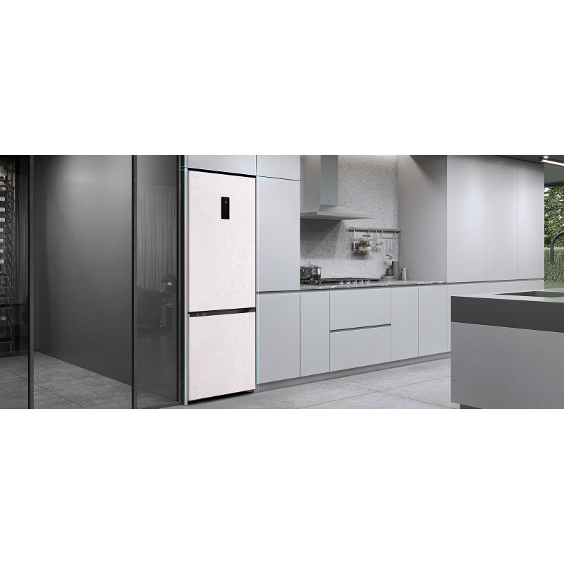 Холодильник LG GC-B509EELM з нижньою морозильною камерою має загальний корисний об'єм 375 л (262 л холодильне відділення + 113 л морозильне). Пристрій оснащений інверторним компресором, системою Total No Frost, технологією DoorCooling+ та зовнішнім LED-дисплеєм. Зона свіжості Fresh Zone підтримує оптимальні умови для тривалого зберігання продуктів. Річне споживання енергії становить 263 кВт·год (клас E), рівень шуму - 35 дБ. Гарантія - 1 рік повна + 10 років на компресор.