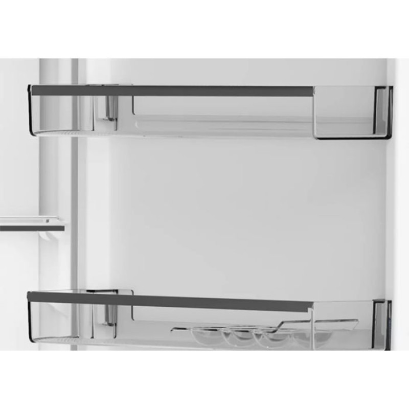 Холодильник Whirlpool WHK26402XP4E висотою 203,5 см із загальним об'ємом 355 л і системою No Frost в обох камерах підтримує стабільну температуру без ручного розморожування. Холодильна камера 249 л із зоною нульових температур і полицею для пляшок, морозильна камера 104 л — для тривалого зберігання продуктів при продуктивності заморожування 6 кг на добу. Клас енергоспоживання A++ знижує річні витрати на електроенергію в порівнянні з менш ефективними класами. Електронне керування з LED-дисплеєм, роздільне регулювання температур, режим «Відпустка» та сигналізація відкритих дверей забезпечують зручність і контроль у щоденному використанні.