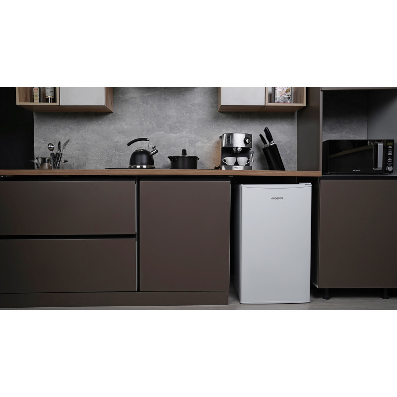 ARDESTO DFM-90W — компактний мініхолодильник об’ємом 93 л у білому кольорі. Має клас енергоефективності A+ та споживає 109 кВт•г на рік. Оснащений механічним керуванням, статичною системою розморожування та можливістю перенавішування дверцят. Рівень шуму — 42 дБ, висота — 85 см.