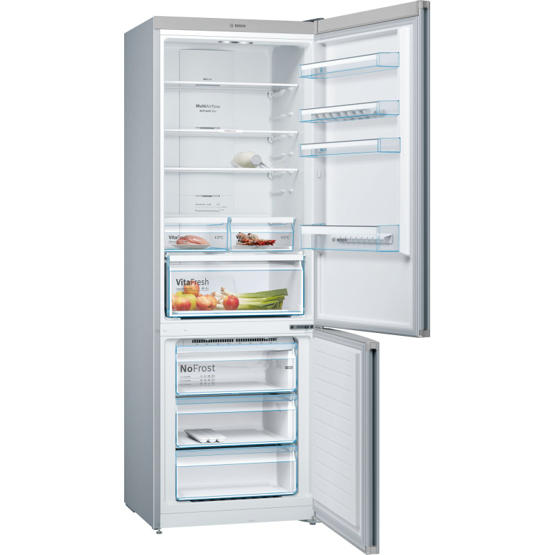 Холодильник з нижньою морозильною камерою. Клас енергоспоживання: A++. Основні характеристики даної моделі холодильників: наявність технології NoFrost, роздільне електронне регулювання температури у холодильній та морозильній камерах, кількість незалежних контурів охолодження - 2, функція швидкого охолодження Super Сooling, функція швидкого заморожування SuperFreezing з автоматичним відключенням, акустичний сигнал та електронний індикатор відчинених дверцят, система попередження про несправності та критичне підвищення температури за допомогою акустичного сигналу та візуальної індикації. Корисний об'єм холодильної камери: 330 л, а морозильної 105 л, також є зона свіжості на 28 л.