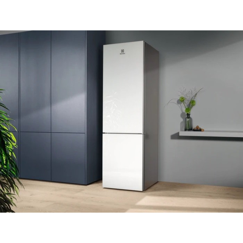 Холодильник Electrolux з нижн. мороз., 201x60х66, холод.відд.-244л, мороз.відд.-94л, 2дв., А++, NF, інв., диспл внутр., зона св-ті, білий+скло