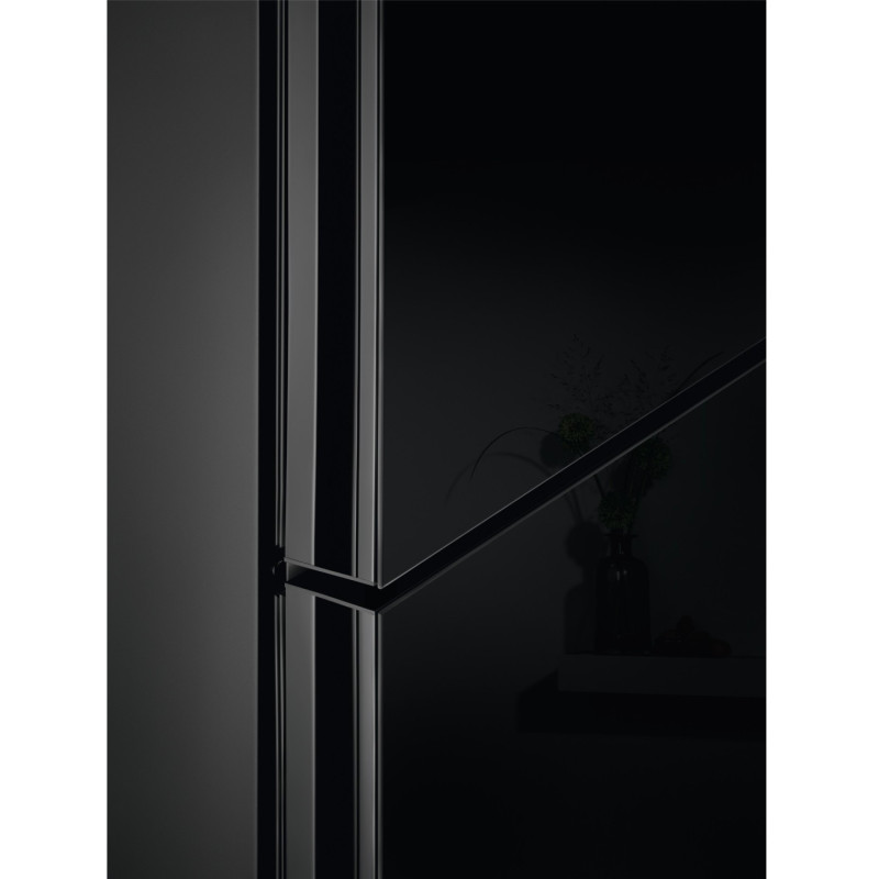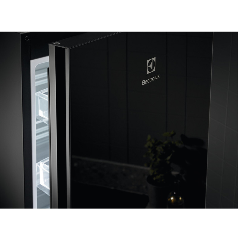 Холодильник Electrolux LNT7ME36K2 поєднує стильний дизайн із чорним склом та продумані технології збереження продуктів. Система Cooling 360° забезпечує рівномірний розподіл холодного повітря по всьому об’єму. Технологія TwinTech® No Frost підтримує оптимальний рівень вологості та запобігає утворенню льоду. Інверторний компресор працює стабільно та тихо. Висувна зона Extra Chill ідеально підходить для зберігання м’яса та сирів.