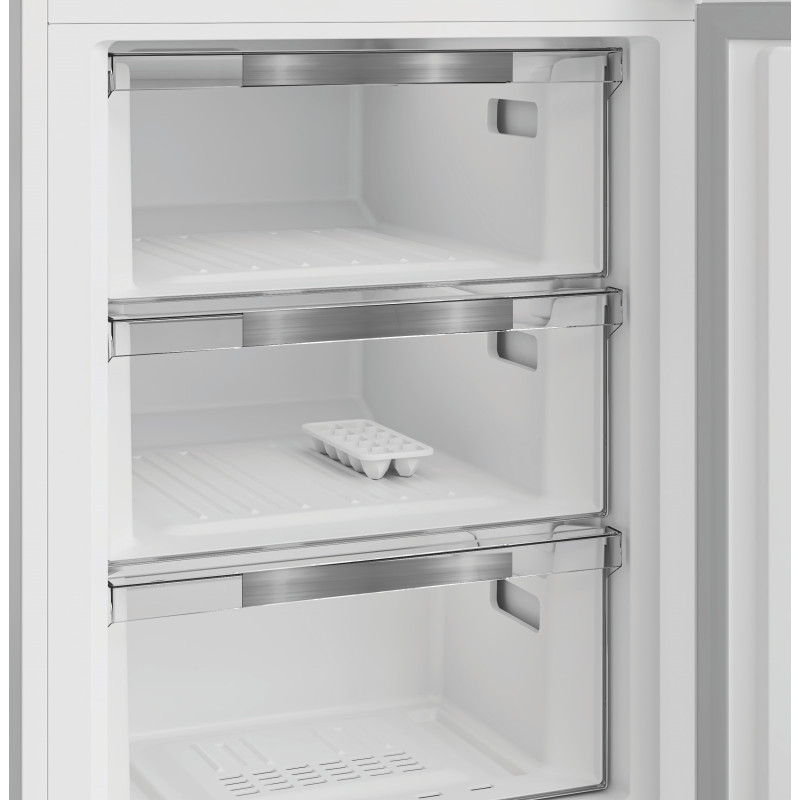 Холодильник Indesit INKS1401S4E1 — двокамерний пристрій сріблястого кольору з нижньою морозильною камерою, загальним об’ємом 386 л (266 л холодильна, 120 л морозильна). Клас енергоспоживання А++ з річним використанням 247 кВт·год, статична система охолодження та механічне управління. Розмір 202.5 × 59.5 × 67 см, рівень шуму 38 дБ, автономне збереження холоду до 33 годин. Двері перевішуються, полиці з загартованого скла, бокс свіжості та захист від стрибків напруги. Кліматичний клас SN-ST для стабільної роботи в помірному кліматі.