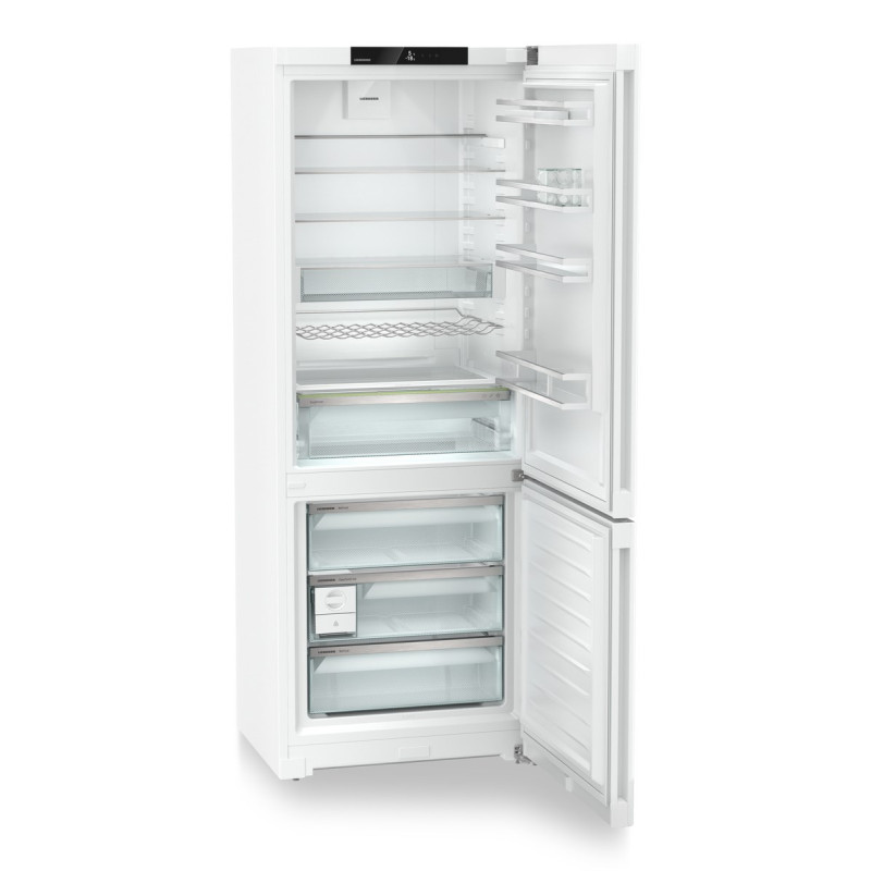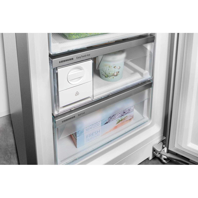 Liebherr CND7723 — це сучасний двокамерний холодильник з системою NoFrost, яка запобігає утворенню льоду та інею. Технологія DuoCooling передбачає використання двох окремих контурів, тому повітря з холодильної та морозильної камер не змішується. Завдяки системі PowerCooling, потужний і водночас тихий вентилятор розподіляє холодне повітря по всьому холодильнику. За допомогою льодогенератору EasyTwist-Ice ви можете легко й швидко приготувати кубики льоду без підключення до водопроводу. У холодильнику Liebherr є відділення VarioSafe. Це відділення з можливістю регулювання за висотою, завдяки якому ви зможете впорядкувати свої продукти. Відділення EasyFresh довго зберігатиме свіжість ваших продуктів. Тут забезпечуються оптимальні умови зберігання для незапакованих овочів і фруктів.