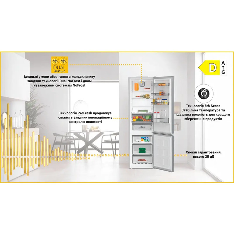 Тип холодильника: Двокамерний Корисний об'єм хол. камери: 249 л Корисний об'єм мор. камери: 106 л Розмір (Ш х В х Г): 59.5 x 203.5 x 66.3 см