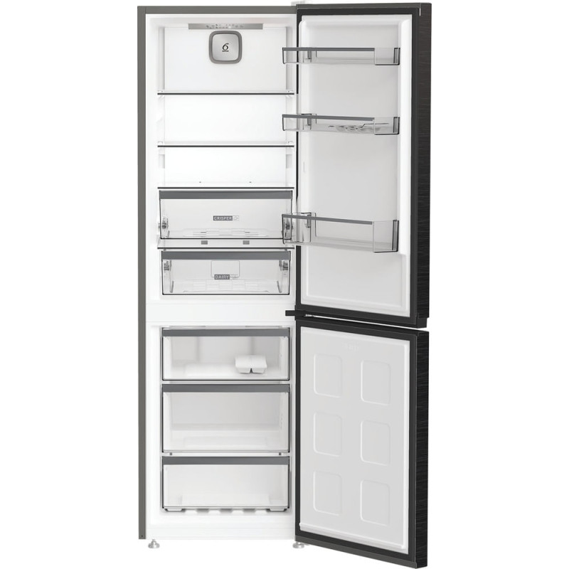Холодильник Whirlpool WHK25364XBR4E — двокамерна модель із нижнім розташуванням морозильної камери та системою Dual No Frost. Загальний об’єм 316 л забезпечує зручне зберігання продуктів у повсякденному використанні. Інверторний компресор підтримує стабільну температуру та низький рівень шуму. Нульова зона створює оптимальні умови для зберігання свіжих продуктів. Сірий корпус гармонійно поєднується з сучасним інтер’єром кухні.
