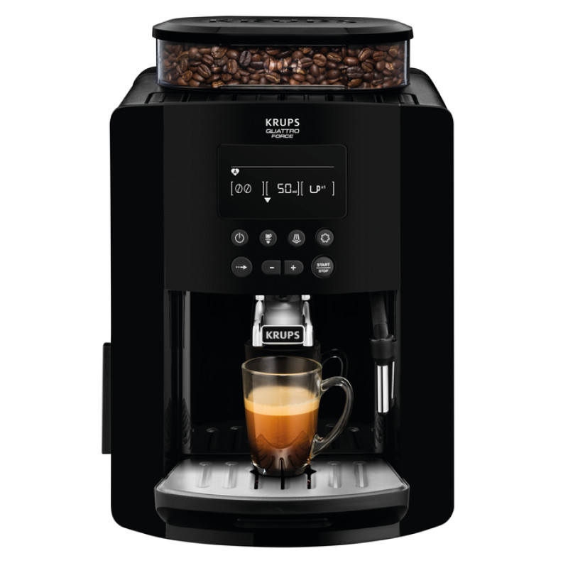 | Особливості | Система KRUPS Quattro Force оптимізує кожен етап приготування кави Великий контейнер для води та кавових зерен Інтуїтивно зрозуміла панель управління з великим LCD-дисплеєм 3 температури та 3 ступені помелу Режим збереження улюблених рецептів |