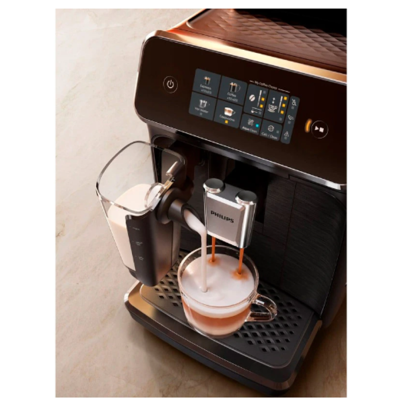 Одним натисканням кнопки LatteGo автоматично готує кавові напої із шовковисто м’якою молочною пінкою завдяки потужній технології піноутворення в циклонній камері — навіть із можливістю додавати ваші улюблені рослинні замінники молока.