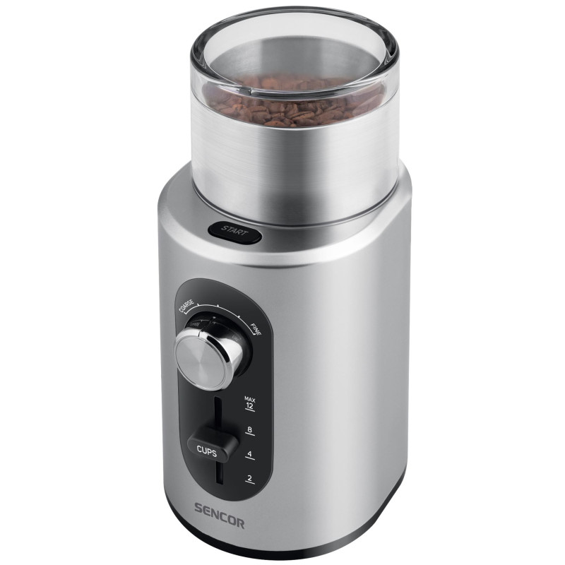 - Електричне розмелювання з налаштуванням грубості розмелювання кави та кількості чашок