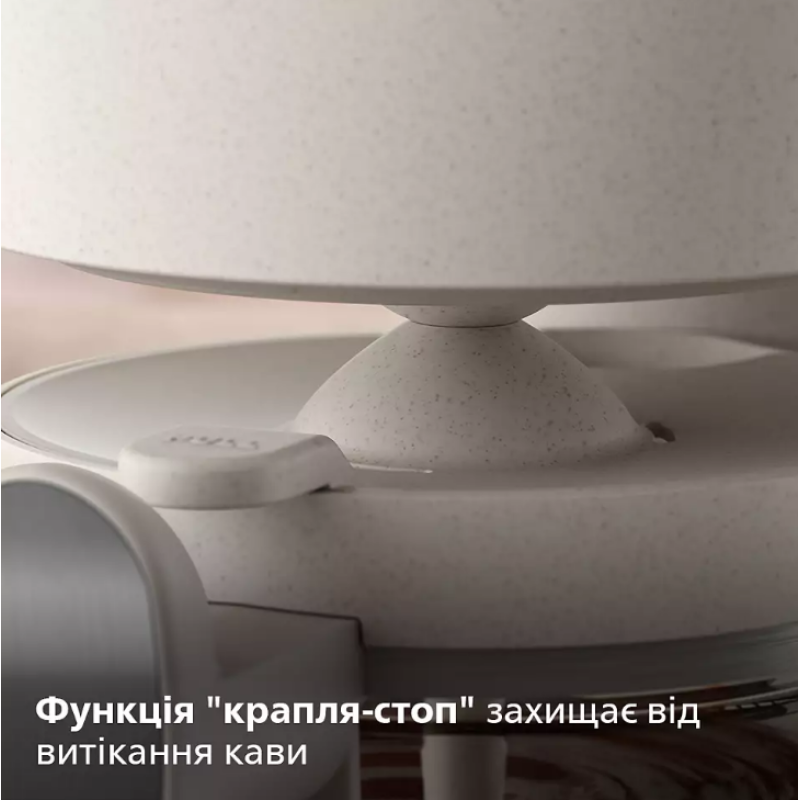 Функція запобігання протіканню ("крапля-стоп") дає змогу налити каву в чашку до завершення повного циклу приготування кави, захищаючи від її витікання.
