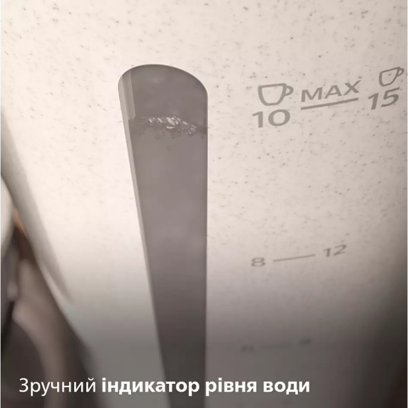 Зручний індикатор рівня води дозволяє наповнити резервуар до бажаного рівня, щоб не витрачати зайву енергію і заварювати лише потрібну кількість кави.