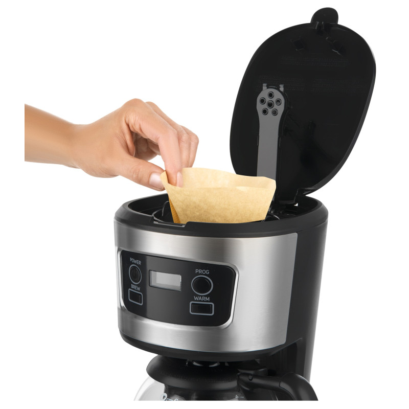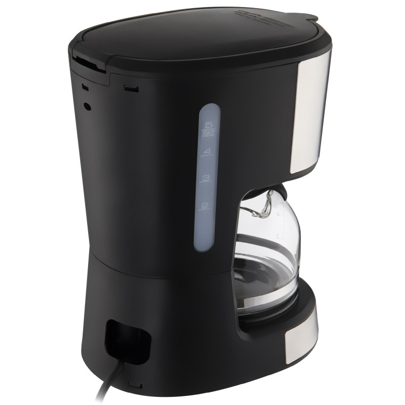 Фільтр, що знімається та миється. Можливість використання одноразових паперових фільтрів (розмір 4). Шкала рівня води на баку й розмітка кількості чашок на кавнику.