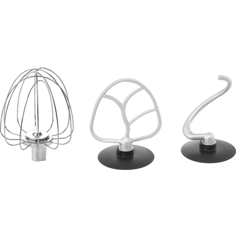 | Комплектація | Кухонна машина Гачок для замісу тіста Лопатка для змішування Віничок для збивання Насадка блендер Насадка м'ясорубка + 2 сітки Насадка для ковбасок Штовхач для м'ясорубки Ніжки-присоски проти ковзання Інструкція Гарантійний талон |