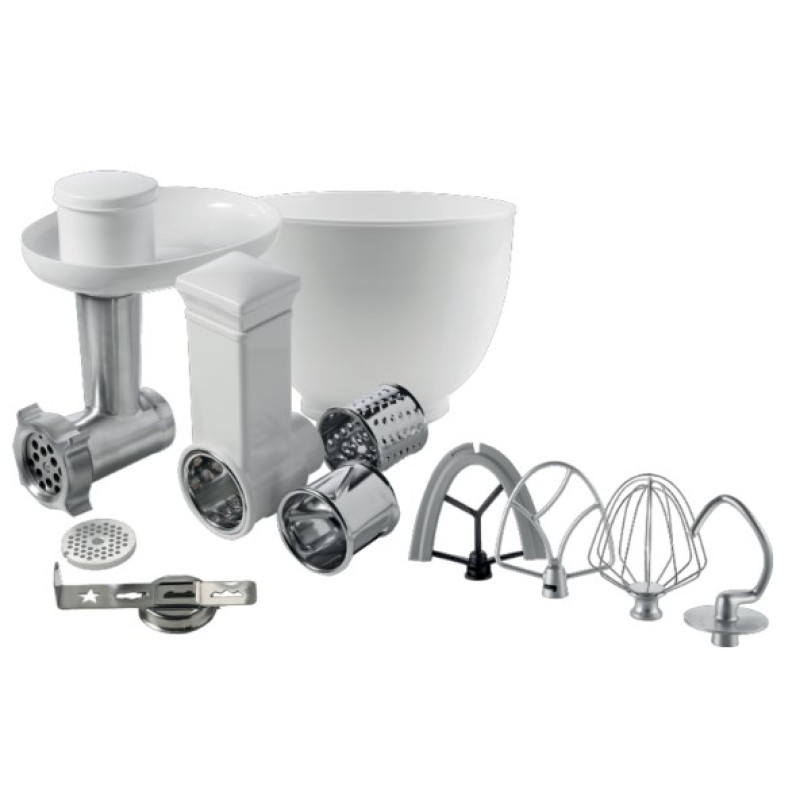 | Особливості | Насадки для приготування печива 3 насадки для нарізання і шаткування Тістоміс Насадка для збивання Насадка для змішування Силіконова насадка для змішування |