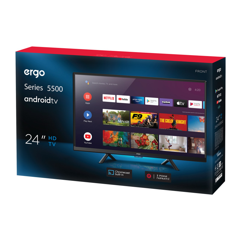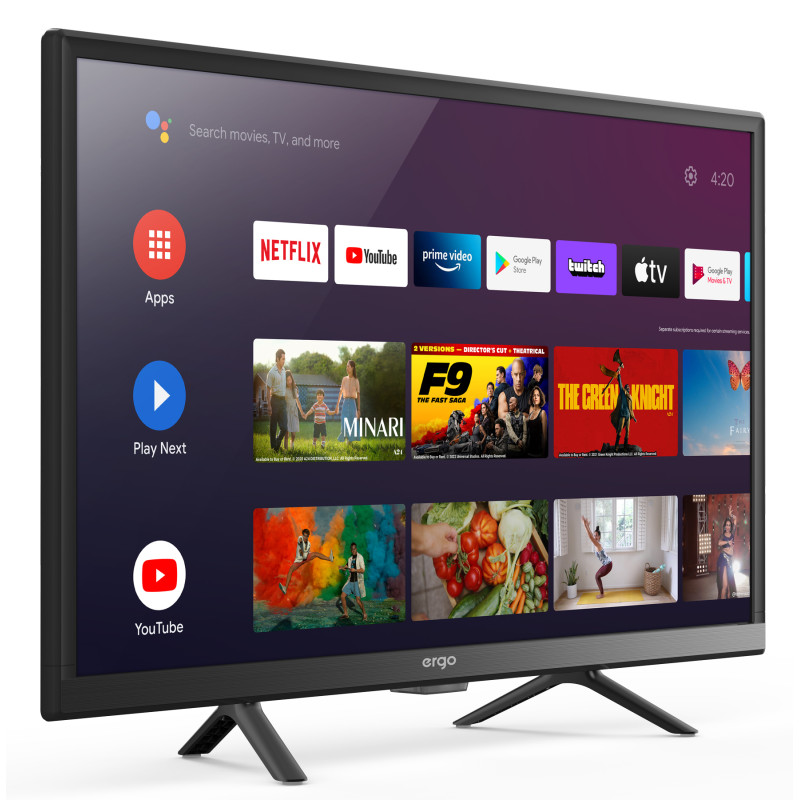 дизайн Стриманий дизайн телевізора відмінно впишеться в інтер'єр вітальні, спальні або кухні Офіційна та найпопулярніша операційна система в світі від Google вже у вашому телевізорі ERGO. Безмежні можливості з перегляду світових стрімінгових сервісів, найновіші прем'єри, музика, ігри та мандрівки в інтернеті на кнопці вашого пульта Офіційна та найпопулярніша операційна система в світі від Google вже у вашому телевізорі ERGO. Безмежні можливості з перегляду світових стрімінгових сервісів, найновіші прем'єри, музика, ігри та мандрівки в інтернеті на кнопці вашого пульта Голосове