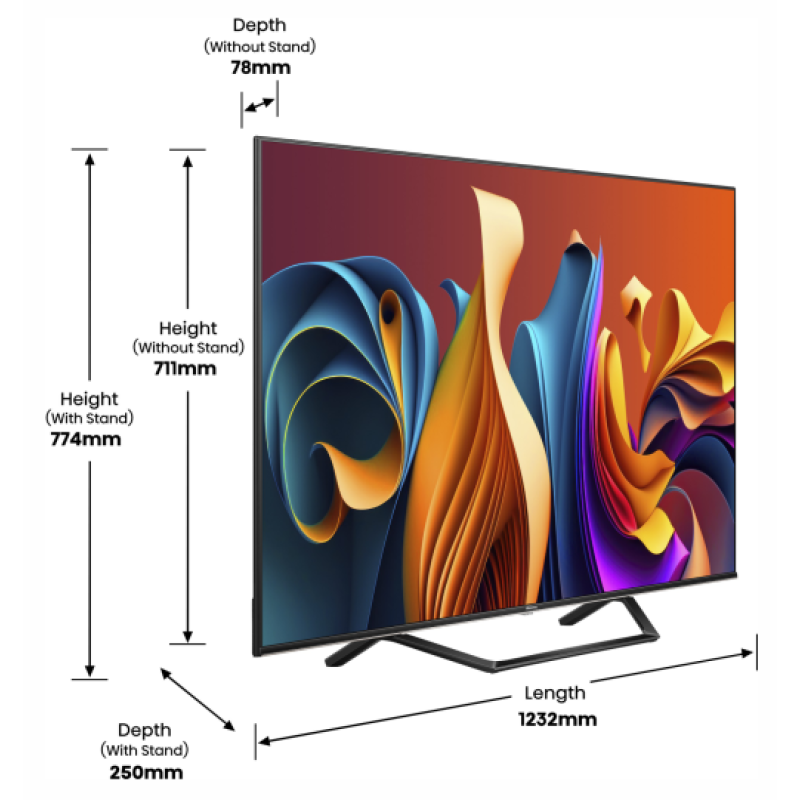| Розміри без підставки (Ш х В х Г), мм | 1232 х 711 х 78 |