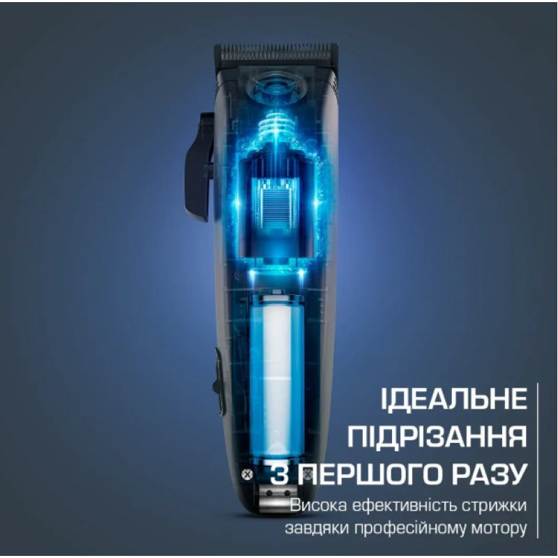 | Комплектація | Машинка для стрижки, 6 фіксованих гребінців (3-6-9-12-18-25 мм), 3 набори по 2 гребінці для плавного переходу (3-6 /6-9 / 9-12 мм), підставка для зарядки, зарядний пристрій, мастило, щітка |