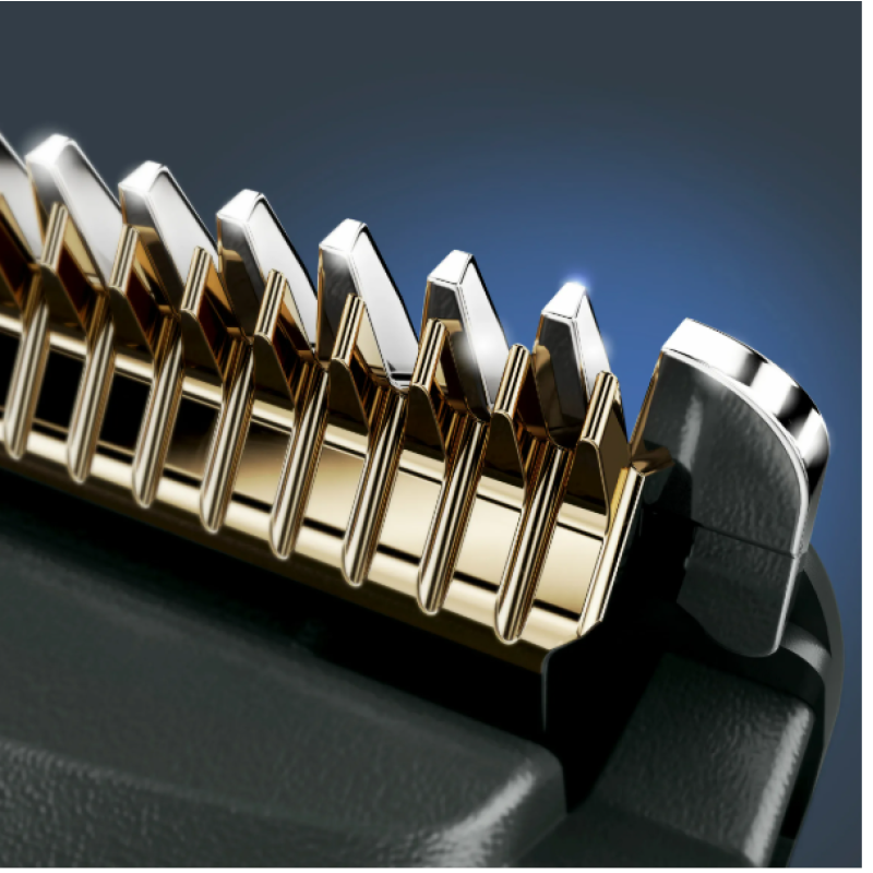 Преміальні самозаточувальні леза з нержавіючої сталі з титановим покриттям, які завжди залишаються гострими та не потребують заміни, служитимуть до 15 років. У поєднанні з потужним мотором вони гарантують ідеальне зрізання волосся за один прохід ― навіть коли мова про жорстке густе волосся.