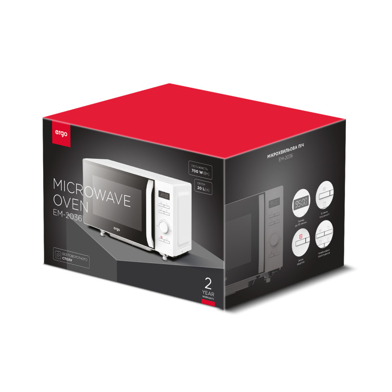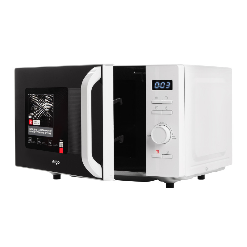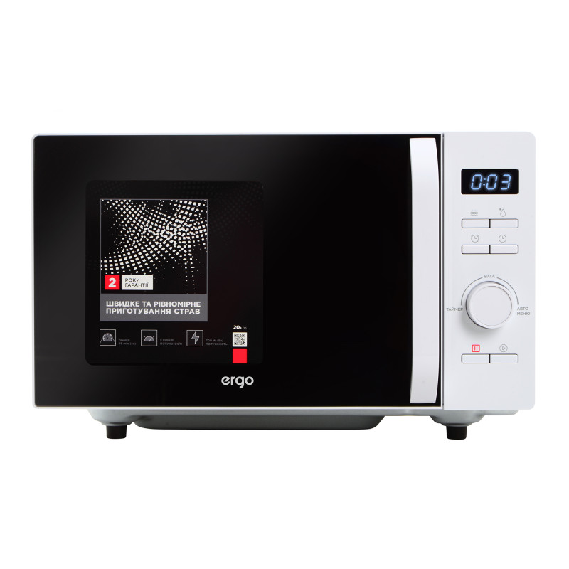 Мікрохвильова піч ERGO EM-2036 стане незамінною помічницею на вашій кухні, адже з її допомогою можна не лише швидко розігрівати та розморожувати найрізноманітніші продукти й готові страви, але й повноцінно готувати їжу. Привабливий білий колір корпусу й сучасний дизайн допоможуть цій печі вдало вписатися в інтер’єр будь-якого стилю.