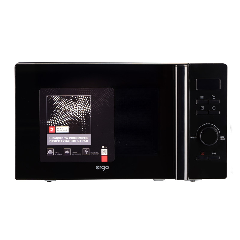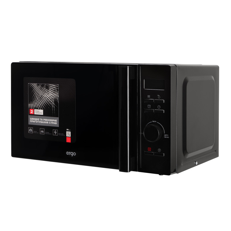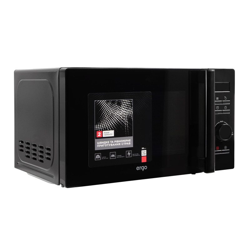 ERGO EM-2050 – це сучасна мікрохвильова піч у стильному чорному корпусі з об’ємом внутрішнього простору 20 літрів, яка відмінно пасуватиме до сучасних інтер’єрних рішень на кухні. Завдяки своїй надійності та функціональності вона розігріватиме, розморожуватиме й готуватиме їжу швидко та без зайвого клопоту.
