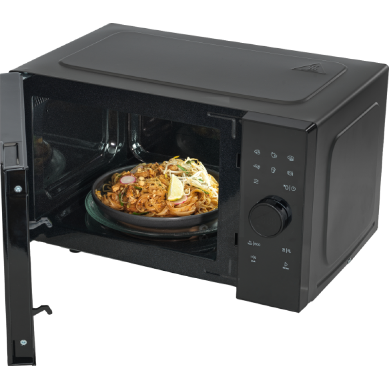 Увімкнувши режим ECO, ви зменшите енергоспоживання приладу в режимі очікування. У режимі ECO, коли мікрохвильову піч не використовують, вимикається світлодіодний дисплей разом із годинником, а також функції панелі керування. Це мінімізує споживання енергії та робить мікрохвильову піч ще енергоефективнішою. Технологія, яка допомагає економити на рахунках і берегти планету.