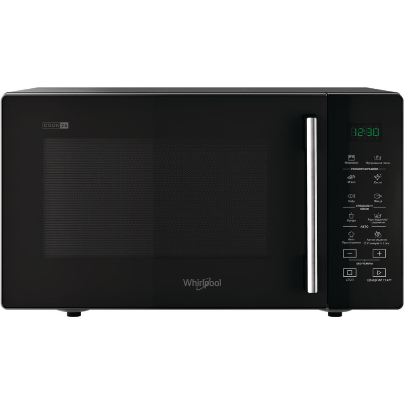Мікрохвильова піч Whirlpool соло MWP 251 B потужністю 900 Вт. Аутентичні елементи дизайну, простий у користуванні інтерфейс, ергономічні елементи управління. Функція JetStart прискорює нагрів до максимуму за 30 секунд, забезпечуючи ідеальний температурний режим для розігріву їжі з високим вмістом води. Виберіть один зі 100 попередньо запрограмованих рецептів, і мікрохвильова піч автоматично налаштує температуру і час для забезпечення ідеальних результатів.