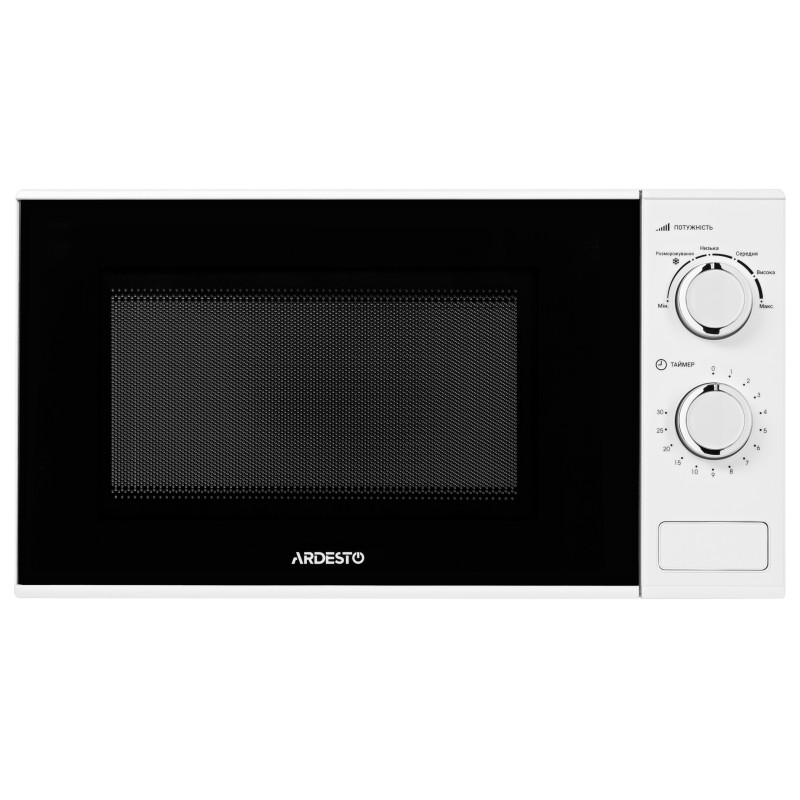 Мікрохвильова піч білого кольору з механічним управлінням. Потужність GO-M923W – 900 Вт, є шість рівнів регулювання, а внутрішній обсяг дорівнює 23 л.