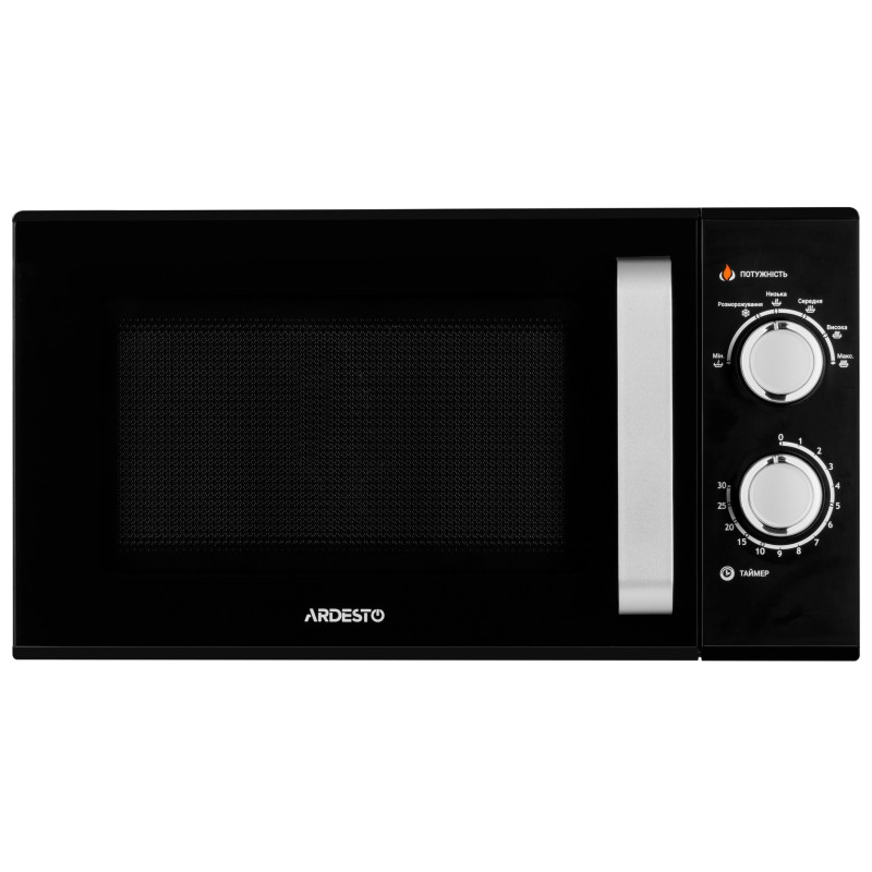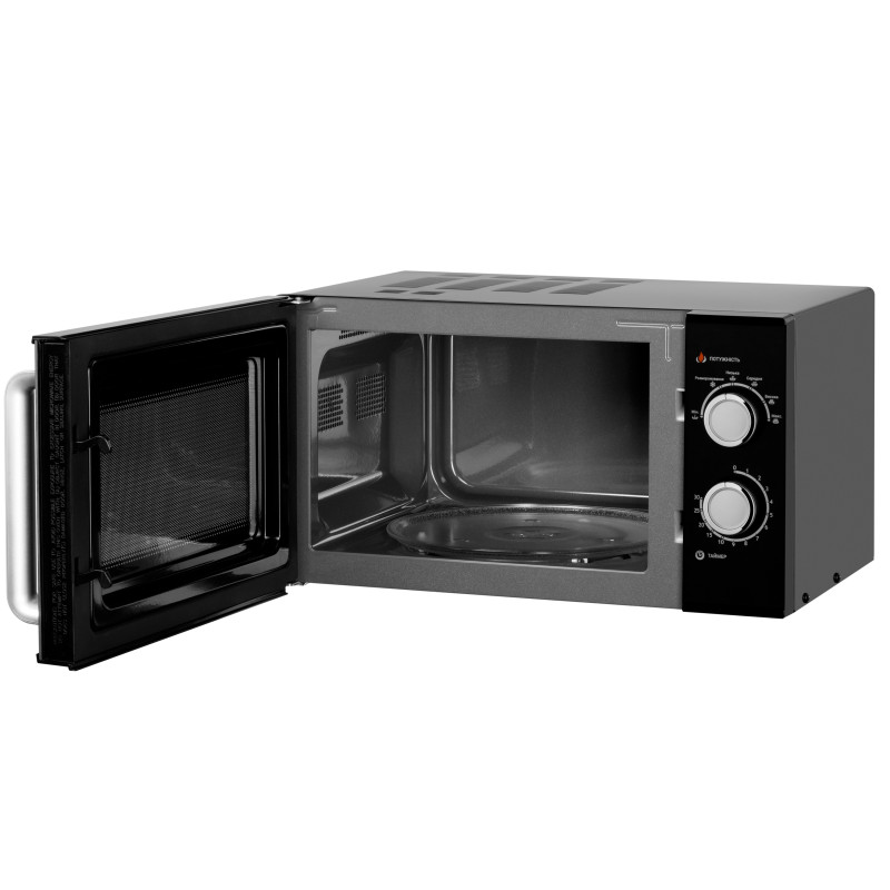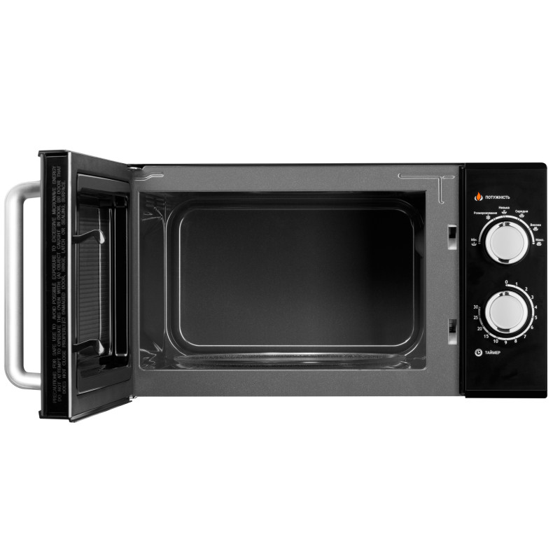 Мікрохвильова піч чорного кольору з механічним управлінням. Потужність GO-M923B – 900 Вт, є шість рівнів регулювання, а внутрішній обсяг дорівнює 23 л.