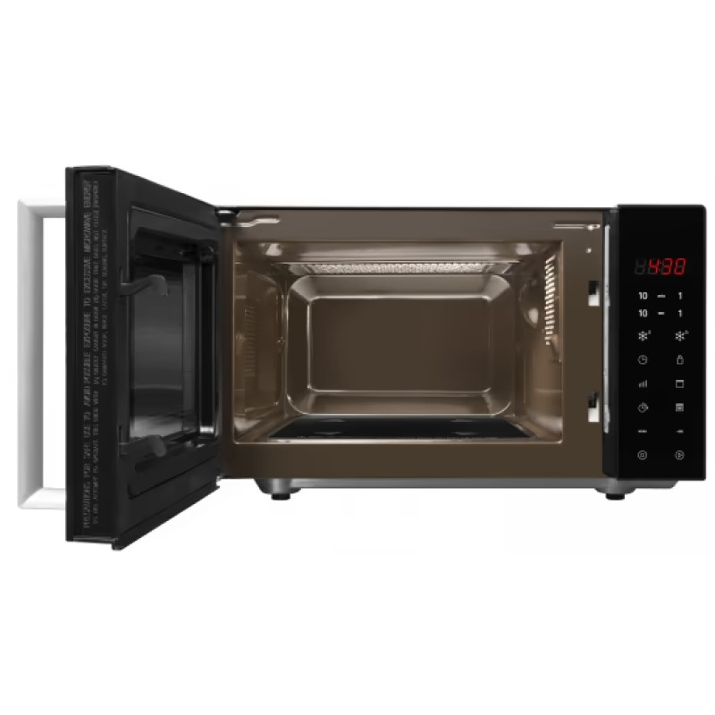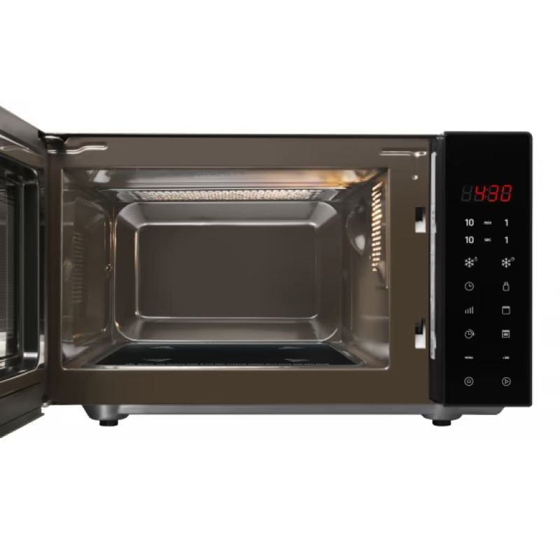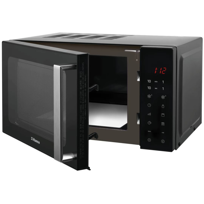 Мікрохвильова піч Hansa AMGF20E1GFBH – компактна 20-літрова модель з електронним керуванням, потужністю 700 Вт та грилем, у стильному чорному дизайні.