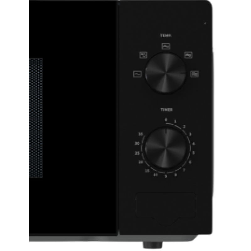 Керування вручну за допомогою регуляторів — це простий і зрозумілий спосіб керувати роботою мікрохвильової печі. Верхній регулятор задає потужність і режим, а нижній є таймером.
