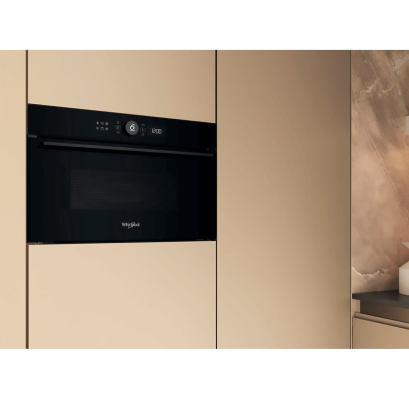 Мікрохвильова піч Whirlpool WMD54MB з грилем, об'єм 31 л. Відкрийте для себе нові можливості на вашій кухні з інноваційною мікрохвильовою піччю Whirlpool WMD54MB. Ця сучасна піч поєднує в собі елегантний дизайн і передові технології, щоб зробити приготування і розігрівання їжі ще простішим і зручнішим. Унікальна функція Crisp дасть вам змогу готувати страви з апетитною хрусткою скоринкою, ніби з духовки, а швидке розморожування делікатно й рівномірно розморозить продукти за лічені хвилини, зберігаючи їхній смак і текстуру. Завдяки передовій 3D-технології, мікрохвилі рівномірно розподіляються по всій камері печі, забезпечуючи ідеальний прогрів кожної порції вашої страви. Інтелектуальна технологія 6TH SENSE автоматично визначає оптимальний час і потужність для різних типів продуктів, гарантуючи чудовий результат без зайвих зусиль з вашого боку.