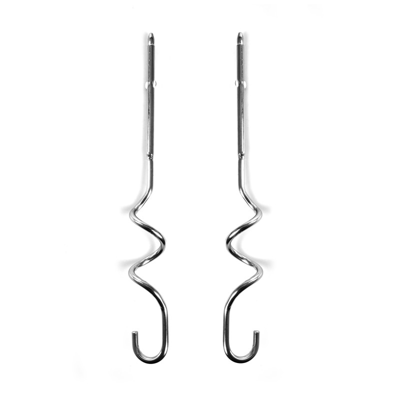 До комплекту поставки міксера входить одразу дві насадки: класичний подвійний вінчик для збивання і загущення рідких продуктів, а також спеціальні насадки для густого тіста, наприклад, для піци чи домашньої випічки.