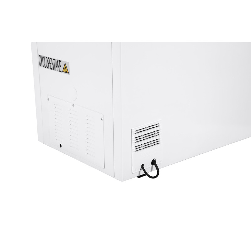 Морозильна скриня білого кольору з механічним керуванням та підтримкою роботи в режимі холодильника. Енергозбереження відповідає класу А+, а корисний об’єм складає 142 л. Час автономного живлення без споживання енергії – 15 год.