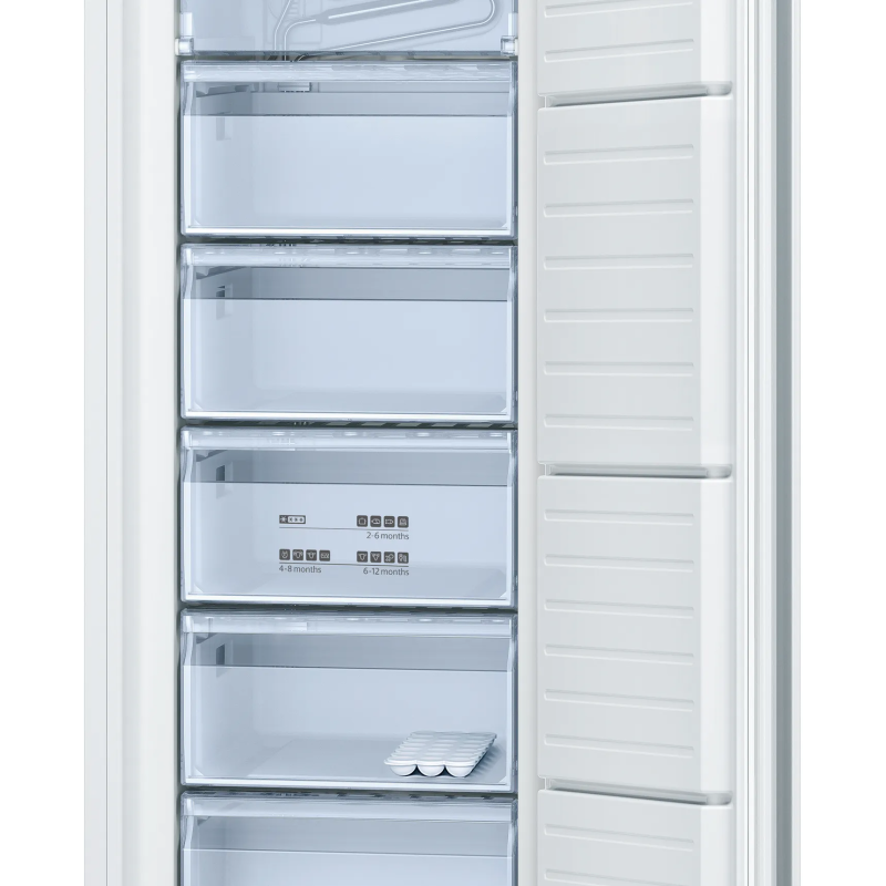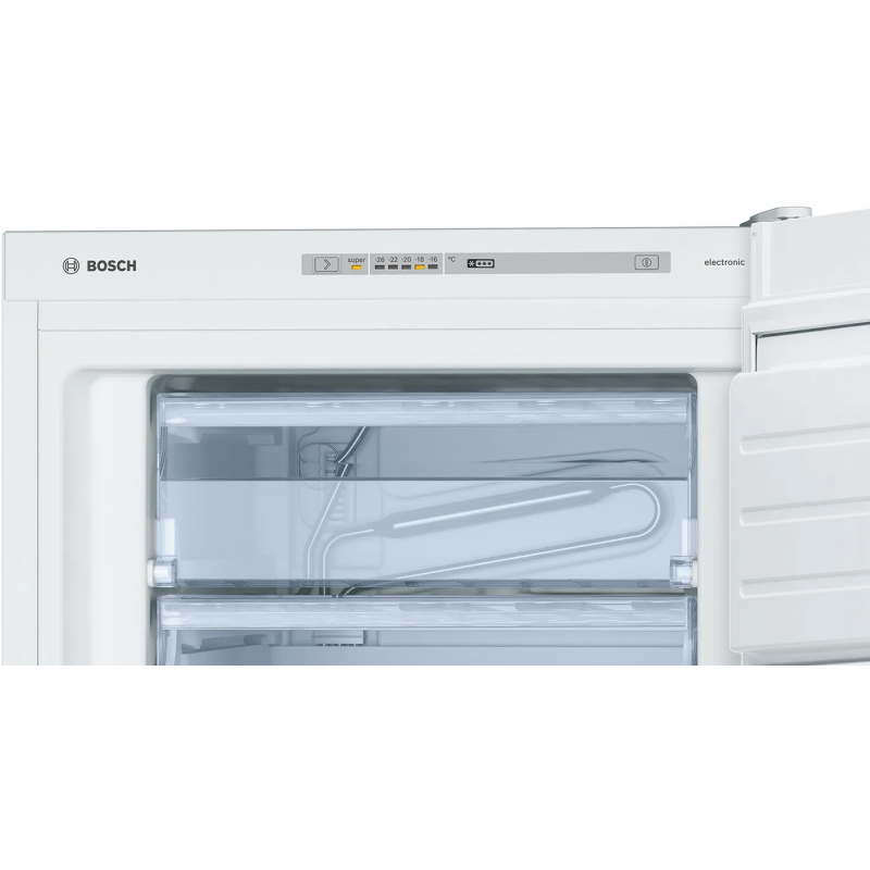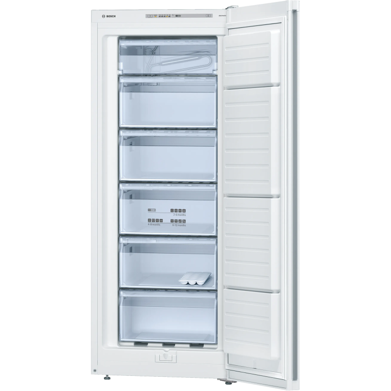Морозильна камера Bosch GSV24VWE0N з об’ємом 182 л забезпечує ефективне зберігання продуктів. Модель класу енергоефективності E працює тихо (42 дБ) і оснащена 5 ящиками та зоною з відкидною кришкою. Має функцію швидкого заморожування й можливість перенавішування дверцят.