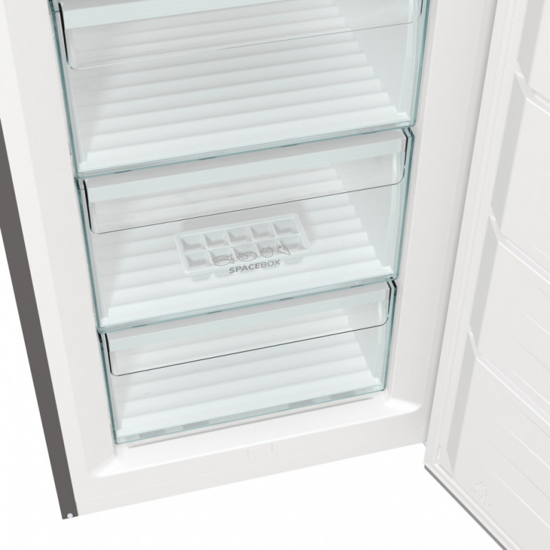 Бракує місця в морозилці холодильника? Тоді зверніть увагу на морозильну шафу Gorenje FN619EES5. Це не просто велика морозильна камера gorenje, а справжня морозильна шафа, висотою в 185 см. Загальний об'єм – 280 л, в якому можуть зберігатися овочі, різне м'ясо, трави та фрукти у 5-ти кошиках та одному ящику з відкидною кришкою. Морозильна шафа gorenje FN619EES5 має високий клас збереження електроенергії (А++) та дуже низький рівень шуму.