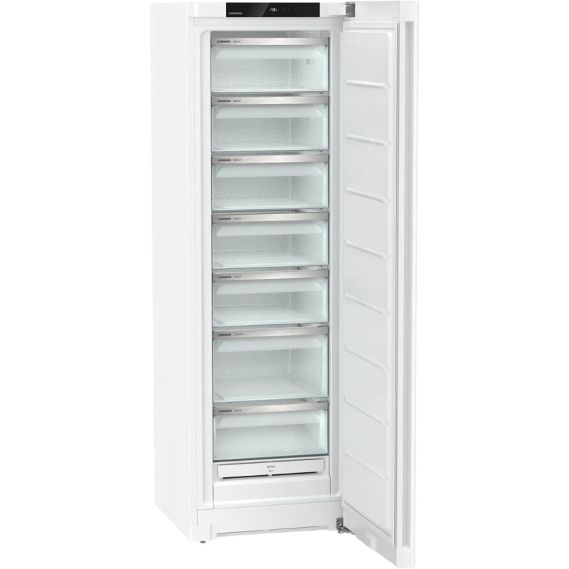 Морозильна камера Liebherr FNe 5207 Pure забезпечує надійне зберігання продуктів із корисним об’ємом 271 л. Оснащена системами NoFrost і SuperFrost для швидкого та безпечного заморожування. Інтуїтивне електронне управління і цифрова індикація температури роблять експлуатацію зручною. Завдяки низькому енергоспоживанню та рівню шуму 38 дБ вона економна та тихо працює.