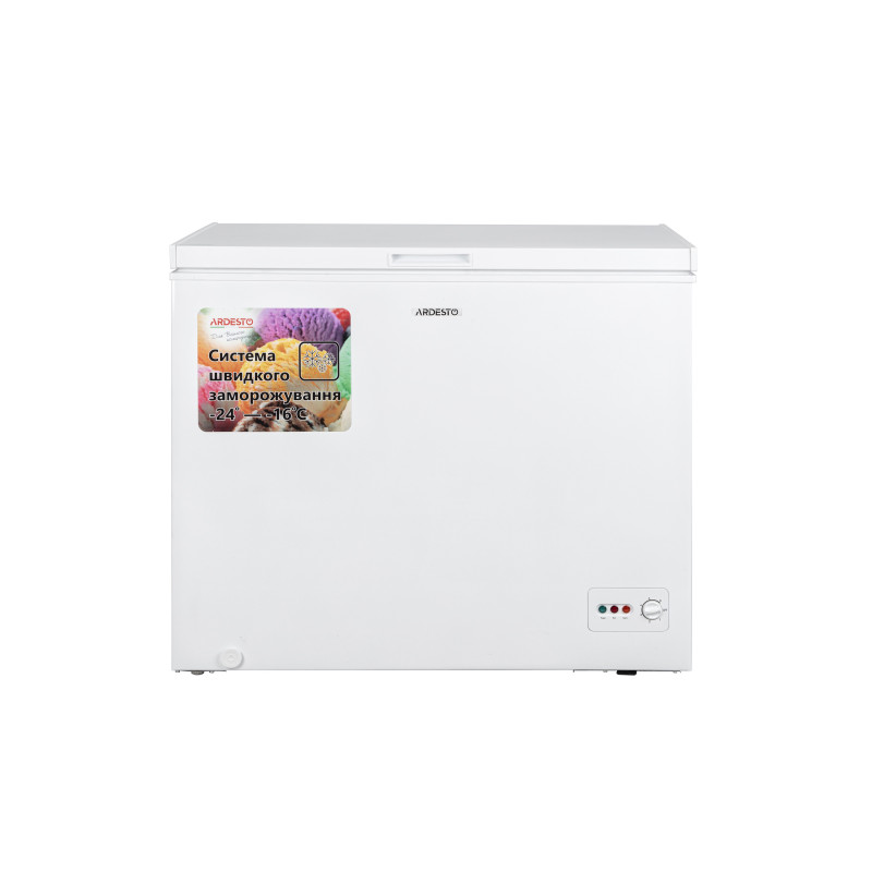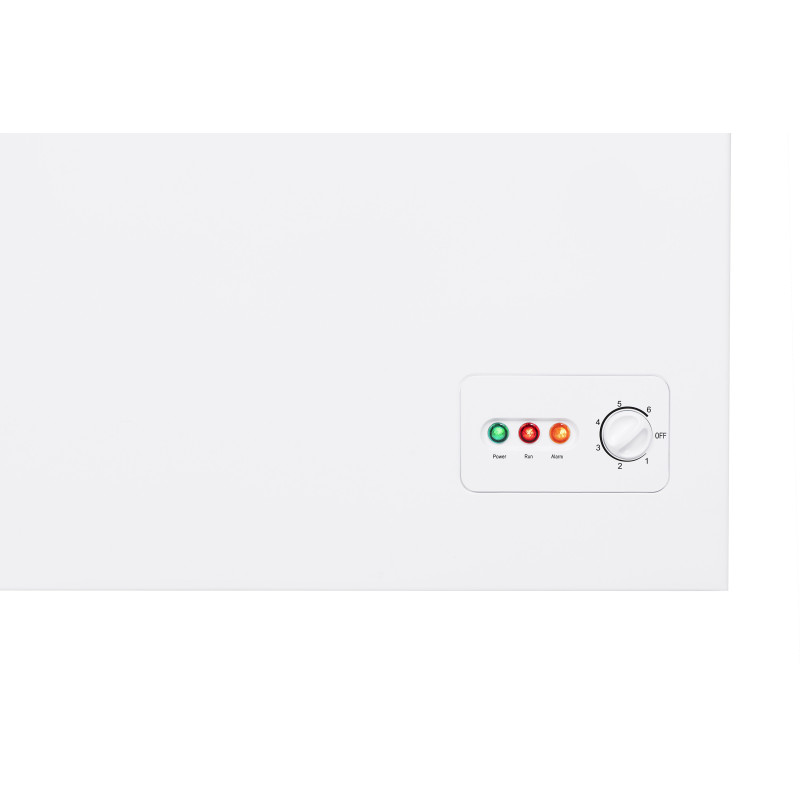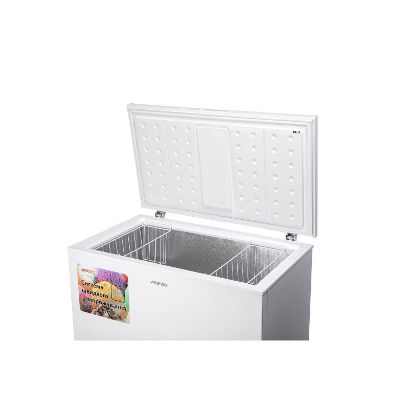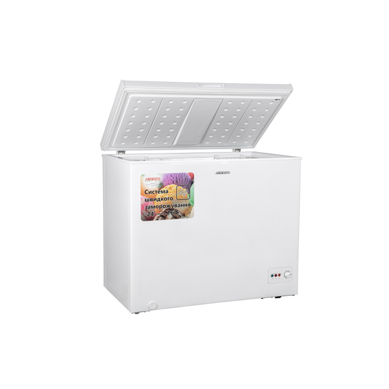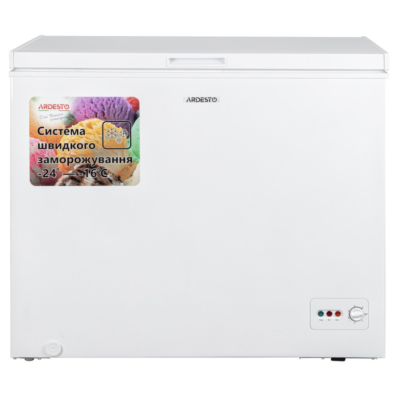 Велика морозильна скриня білого кольору з механічним керуванням і підтримкою роботи в режимі холодильника. Енергозбереження відповідає класу А+, а корисний об’єм становить 249 л.