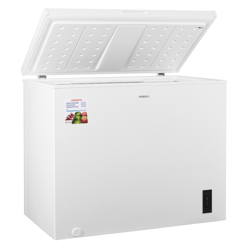 Морозильна скриня ARDESTO забезпечить оптимальний спосіб заморозки та зберігання продуктів. Завдяки особливостям заморозки пристрій загальним об’ємом 249 л гарантує тривале зберігання. Час автономного збереження холоду в морозильній скрині становить 28 год. Система охолодження, передбачена у скрині, – статика. Завдяки енергоефективності класу А++ скриня не суттєво підвищить рахунки за електроенергію. Пристрій працює тихо – шум на рівні 41 дБА. Кліматичний клас, за якого скриня ефективно працюватиме, – N/SN/ST/T. Електронне керування та LED-дисплей гарантують легке користування пристроєм.