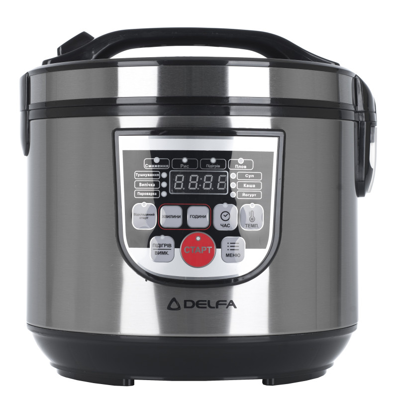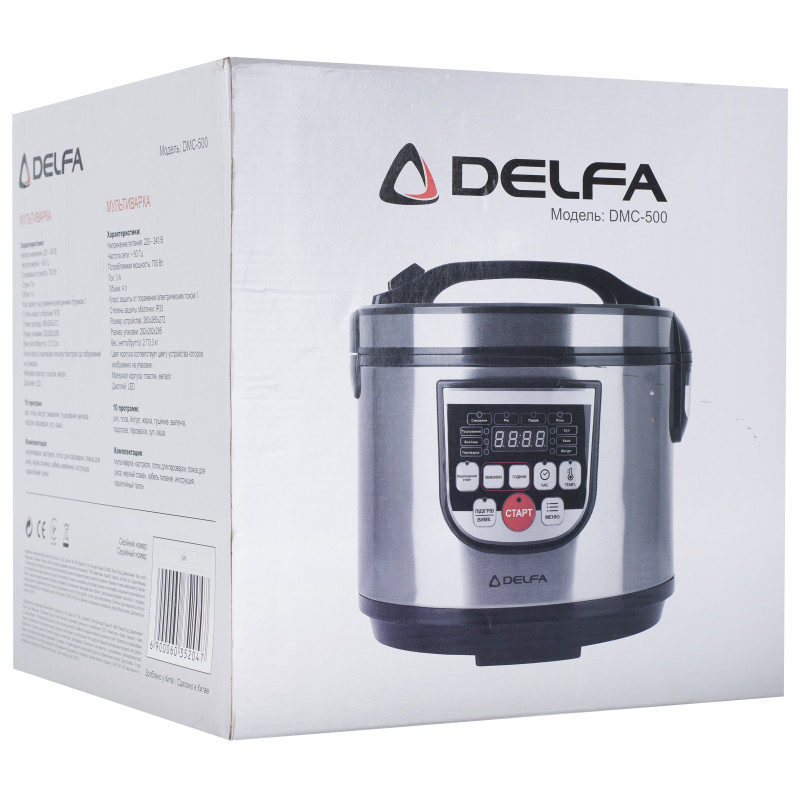 Проста та практична мультиварка потужністю 700 Вт. DELFA DMC-500 має об'єм у 4 літри й оснащена функцією, яка підтримує страву теплою до моменту подачі на стіл. Перелік програм включає наступні варіанти: рис, плов, йогурт, смаження, тушкування, випічка, підігрів, пароварка, суп, каша. Аксесуари в комплекті: мультиварка, каструля, лоток для пароварки, ложка для рису, мірна склянка, кабель живлення, інструкція, гарантійний талон.