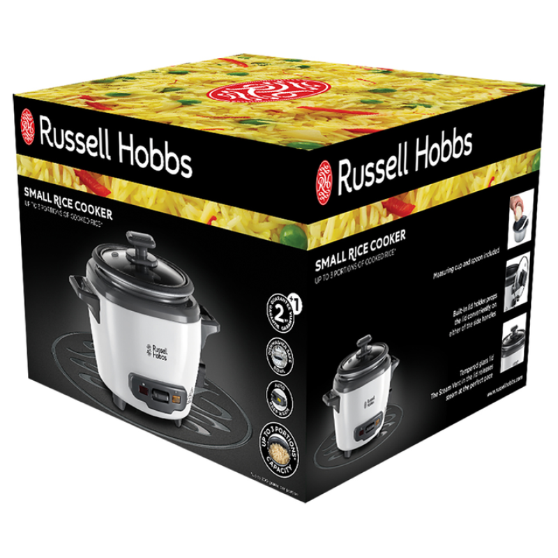 | Особливості | Розрахована на 3 порції вареного рису (до 200 грам на порцію); Автоматичний режим підтримування тепла; Деталі можна мити в посудомийній машині; Знімна каструлька з антипригарним покриттям і скляна кришка; Мірна чашка та ложка в комплекті; Індика |