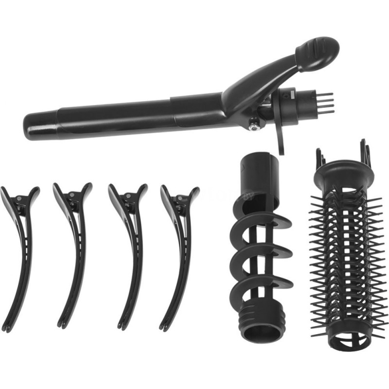 | Насадки | Пластини для випрямлення, пластини для гофрування, спіральна насадка, щітка зі штучною щетиною, щипці для завивки |