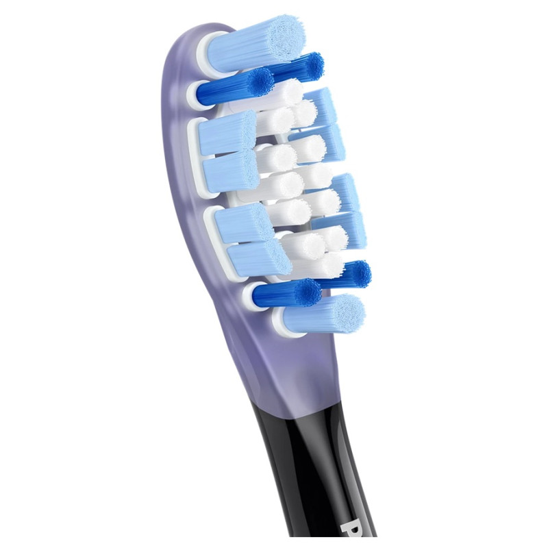 Гнучка конструкція насадки щітки допомагає видаляти до 10 разів більше нальоту, ніж звичайна зубна щітка.**** М'яка гумова основа покращує рух щетинок, забезпечуючи більшу площу охоплення та ретельніше очищення.