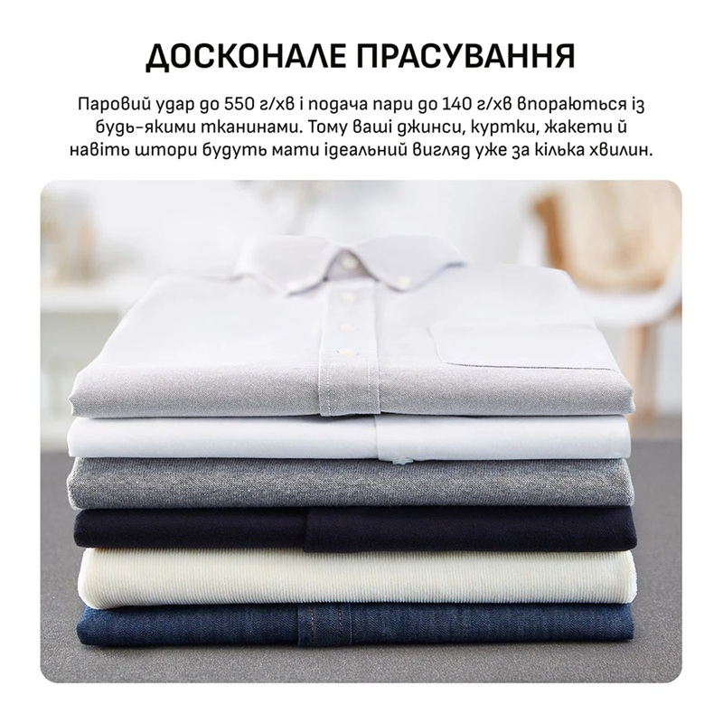 | Особливості | Час нагрівання 120 секунд Постійний розподіл пари: На носику, по боках і по центру Налаштування подачі пари і температури: 3 електронні налаштування Функція захисту від накипу: Знімний колектор для збору накипу |