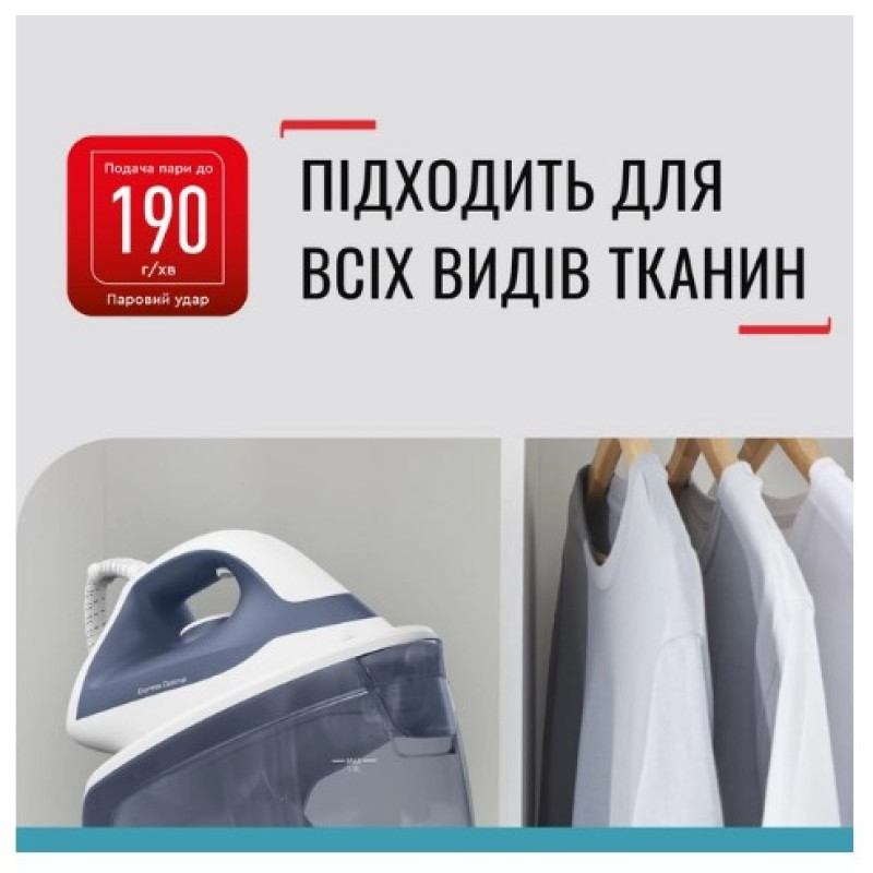 Тип: Парогенератор Потужність: 2200 Вт Підошва: Ceramic Xpress Glide Подача пари: 110 г/хв Паровий удар: 190 г/хв