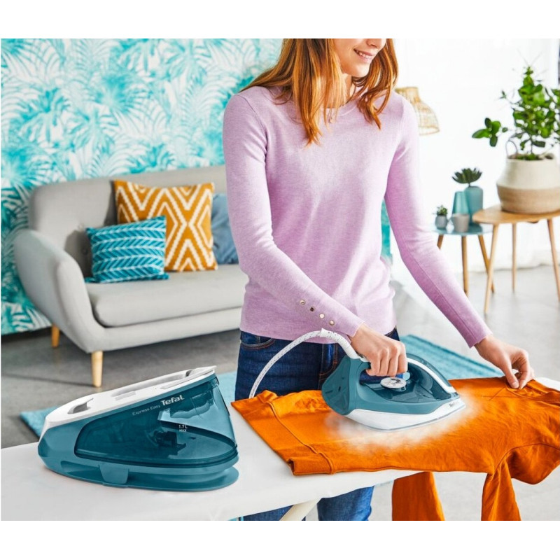 Випробуйте новий рівень потужності та комфорту під час прасування з парогенератором Express Easy. Парогенератор подає пару під тиском 5,8 бар і зі швидкістю до 120 г/хв для швидкого і ефективного розгладження тканин, і створює паровий удар до 350 г/хв, який справляється навіть з найбільш стійкими та непіддатливими складками. Підошва Xpress Glide легко ковзає по будь-якій тканині та гарантує комфортне прасування кожен раз. Знімний резервуар для води об'ємом 1,7 л можна наповнювати прямо під час використання парогенератора. Надійна система блокування забезпечує безпечне перенесення і зручне зберігання пристрою. Парогенератор Express Easy: високоефективний парогенератор для комфортного догляду за одягом.