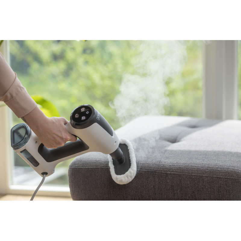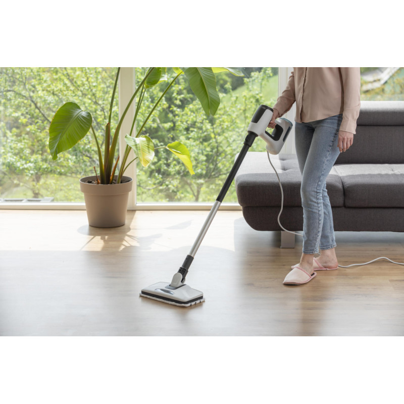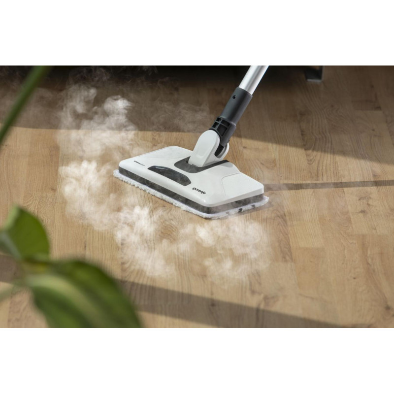 Пароочисник Gorenje SC1506W призначений для очищення підлоги гарячою парою без мийних засобів. Потужність 1500 Вт і тиск пари 0,2 бар дозволяють швидко розм’якшувати та видаляти забруднення. Резервуар на 400 мл і кабель довжиною 5 м роблять пристрій зручним для щоденного використання в квартирах чи будинках середнього розміру. Легка конструкція вагою 2,5 кг полегшує маневрування.