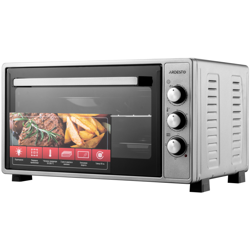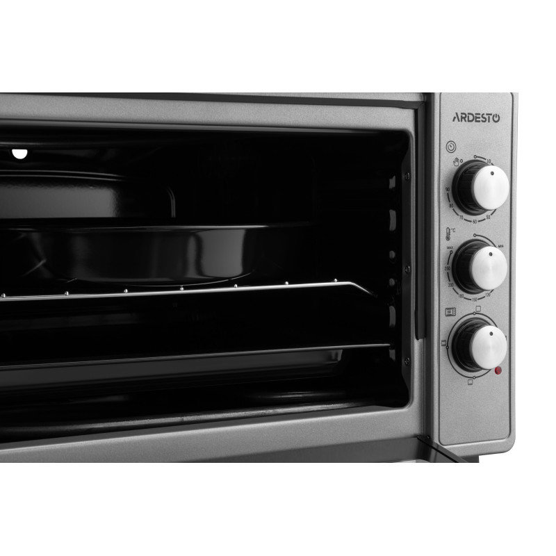 Електропіч ARDESTO MEO-N48GR має потужність 1 700 Вт, що дає змогу швидко нагрівати пристрій до потрібної температури. Об’єм внутрішньої камери становить 48 л, чого достатньо для приготування різних порцій їжі.