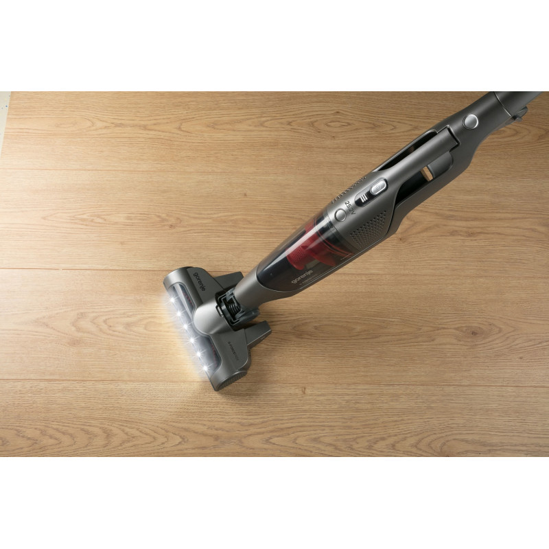 Це автономний пилосос. Не потрібно його паркувати на зарядній станції. Зручна складна ручка дозволяє прибрати пилосос на зберігання в невелику шафку, а від'єднаний акумулятор можна заряджати будь-де. Завдяки потужній літієвої батареї 20000 мАг ви не відчуєте втрату потужності під час прибирання. Навіть при повному заряді пилосос працює з максимальною потужністю. Одним рухом відкрийте засувку, від'єднайте контейнер і витрусіть пил. Контейнер встановлюється на місце за лічені миті.